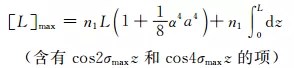 這個結果與WKBJ近似法計算的結果完全一致[1,2]。將n1=1.500和n2=1.489代入式(21),得Δτmax=0.25ns/km,比階躍折射率多模光纖小兩個數量級。
