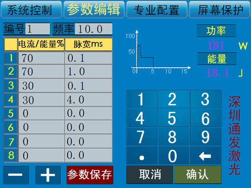 5、設(shè)備具有波形調(diào)用功能,可以根據(jù)上位機(jī)的指令,在不同工位使用不一樣的激光能量,適合加工復(fù)雜工況。